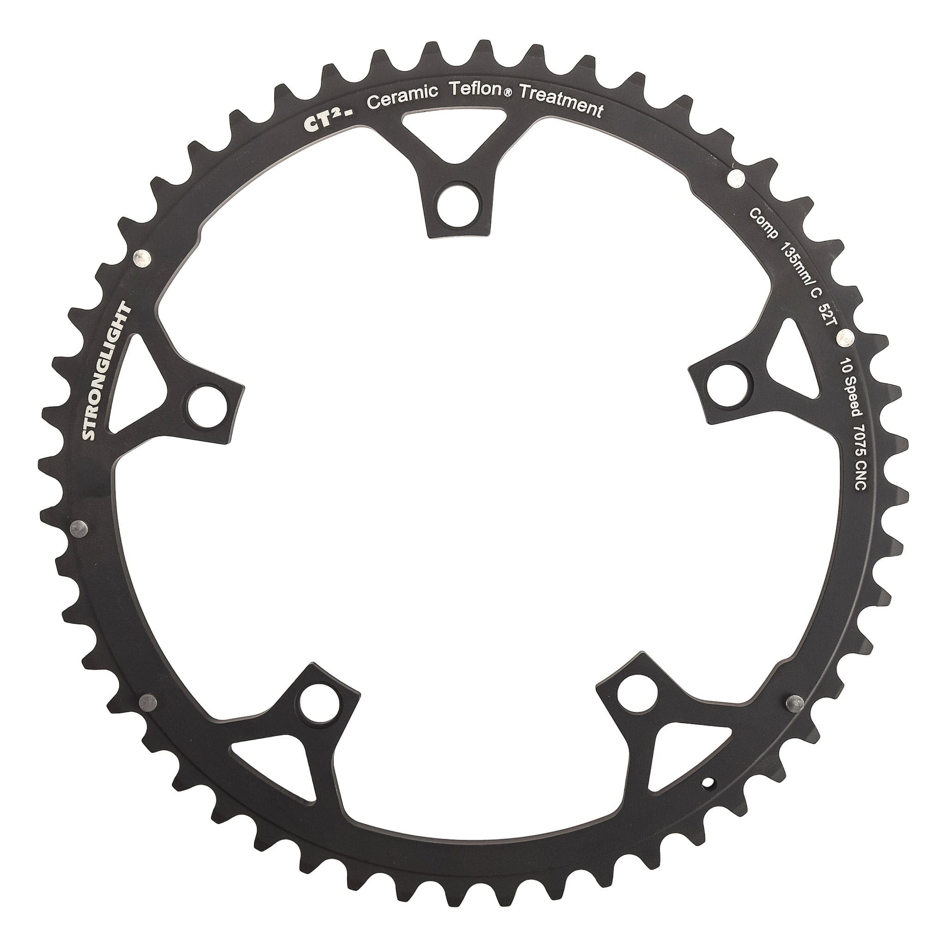 Combinando resistenza, leggerezza, precisione, efficienza e comfort d'uso, questo ingranaggio CT2 viene proposto nella versione standard (S) per guarniture Campagnolo Record, Chorus, Centaur Alu e Fulcrum RS e RRS a 9 e 10 velocità con interasse (BCD) di 135 mm.