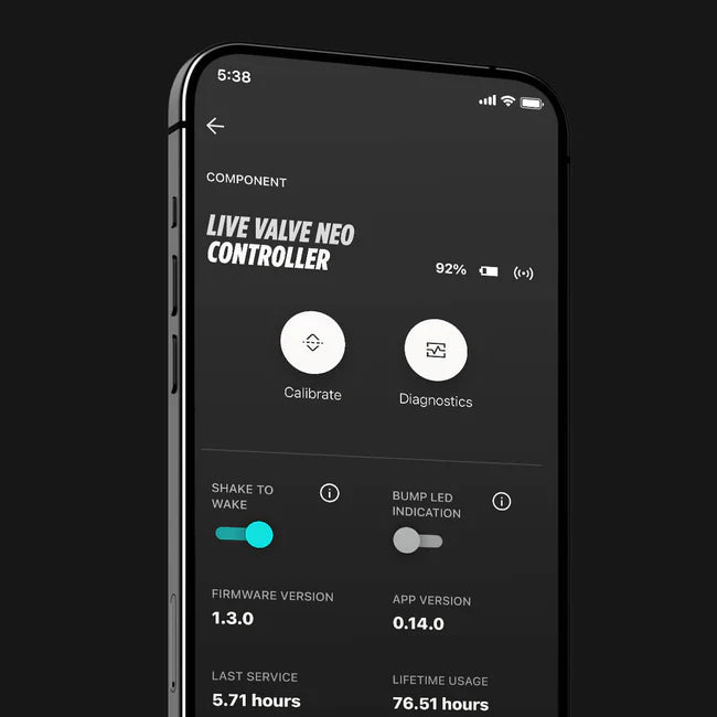 Grazie ai sensori di bordo e a un sistema di gestione ultraveloce, Live Valve Neo (venduto separatamente) regola automaticamente la compressione fino a 1000 volte al secondo. Il risultato è un ammortizzatore che anticipa i contorni del terreno per darvi sempre la migliore regolazione possibile, senza che dobbiate fare nulla.