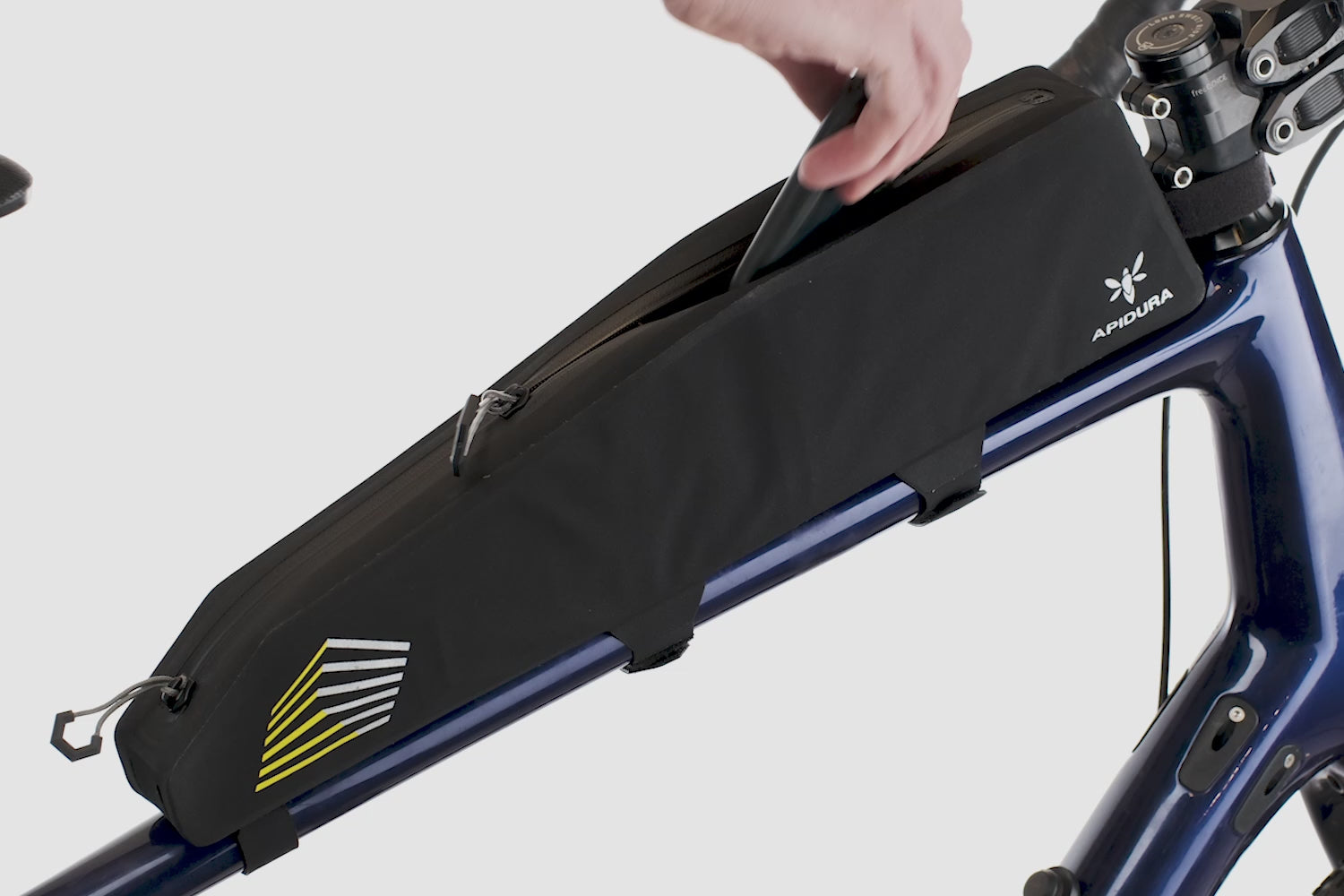 Progettata per le gare di ultra-distanza e per gli sterrati, la borsa da telaio APIDURA RACING LONG TOP TUBE PACK 2 L offre una capacità estesa di 2 litri in un formato leggero e snello. Consente di tenere a portata di mano il telefono, gli snack o uno strato extra, rimanendo perfettamente stabile sulla bicicletta. È facile da aprire grazie a una cerniera a due vie completamente impermeabile.