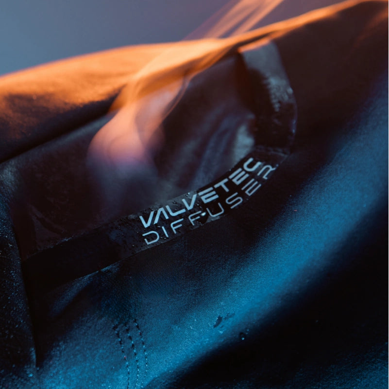 Les valves Diffusor situées sur les épaules assurent une régulation active de la température interne, en favorisant la circulation d’air entre les couches. Cette technologie empêche la surchauffe et maintient un microclimat sec et stable, même lors des ascensions les plus exigeantes.