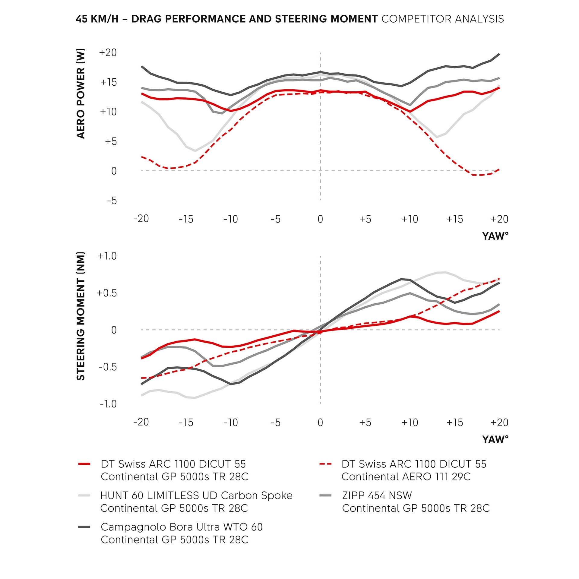 Il cerchio a V svolge un ruolo fondamentale nella riduzione della resistenza aerodinamica frontale. Compensa l'aumento dell'area frontale dovuto alla maggiore larghezza interna, migliorando le prestazioni aerodinamiche complessive. Questo design assicura anche un basso momento di sterzata, garantendo una sensazione di guida fluida, anche in presenza di vento laterale o di angoli di imbardata estremi.