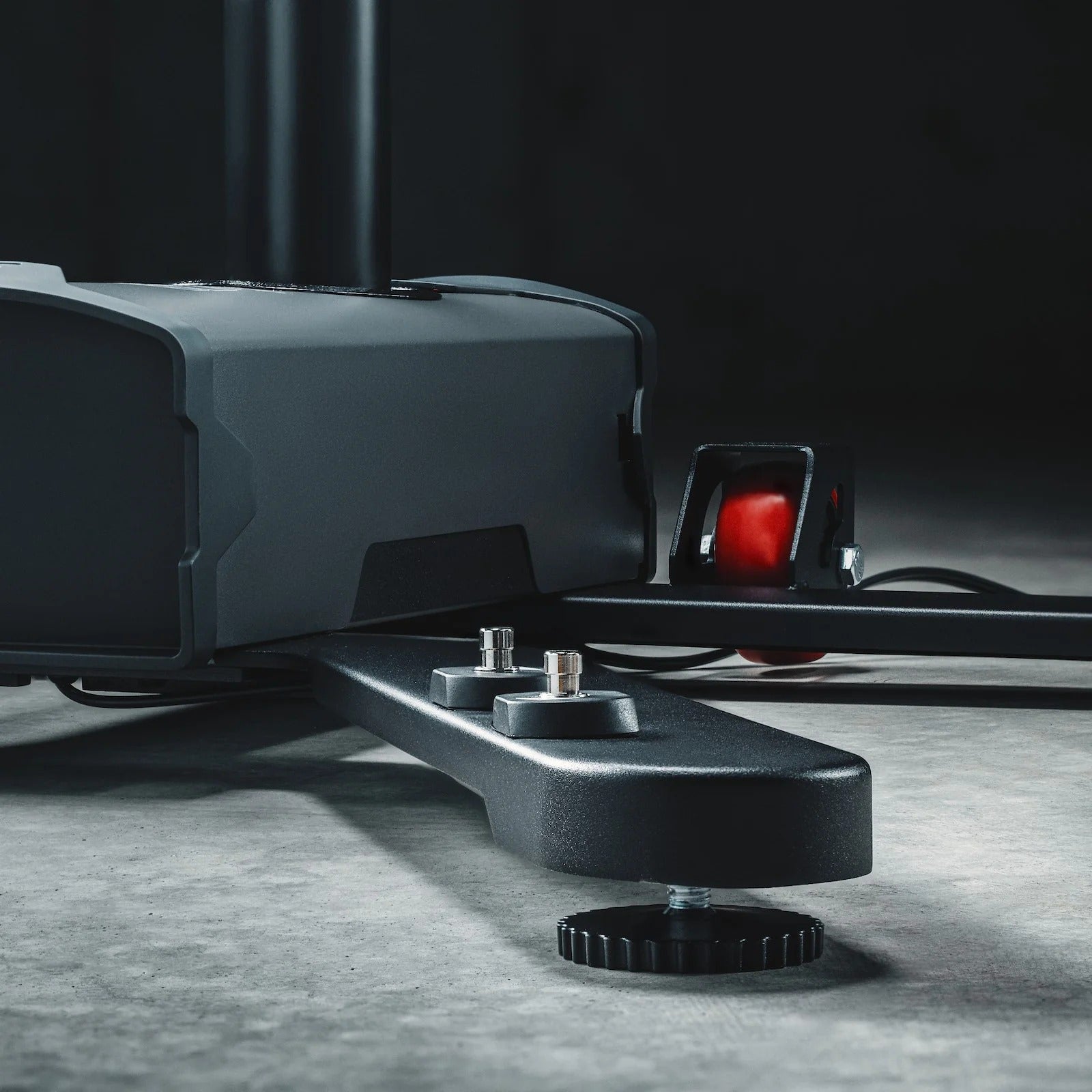 Le levage est entièrement électrique et actionné au pied, libérant les mains pour les réglages et réparations. Avec une hauteur minimale de 91 cm, le vélo peut être facilement roulé sur le support, tandis que la hauteur maximale de 185 cm permet d’atteindre tous les composants, même les systèmes de transmission des e‑bikes. La fonction de détection de collision garantit une descente sécurisée du vélo, protégeant à la fois l’utilisateur et le cadre.