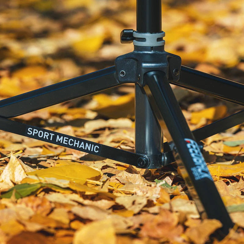 La base trépied large de 137 cm avec embouts en caoutchouc garantit une stabilité exceptionnelle, même sur des surfaces irrégulières. Fabriqué en aluminium anodisé 6061 T6 et acier revêtu de poudre, le stand reste léger, durable et résistant à la corrosion, capable de supporter jusqu’à 29,5 kg tout en étant optimisé pour des vélos jusqu’à 15,9 kg.