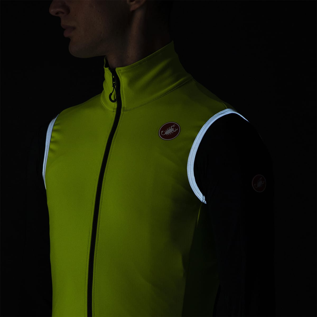 Con una cerniera completa YKK® Vislon®, una fascia in vita in silicone e un paraspruzzi nella parte inferiore della schiena, questo gilet CASTELLI di alta gamma ha tutti i dettagli di design di grande qualità!