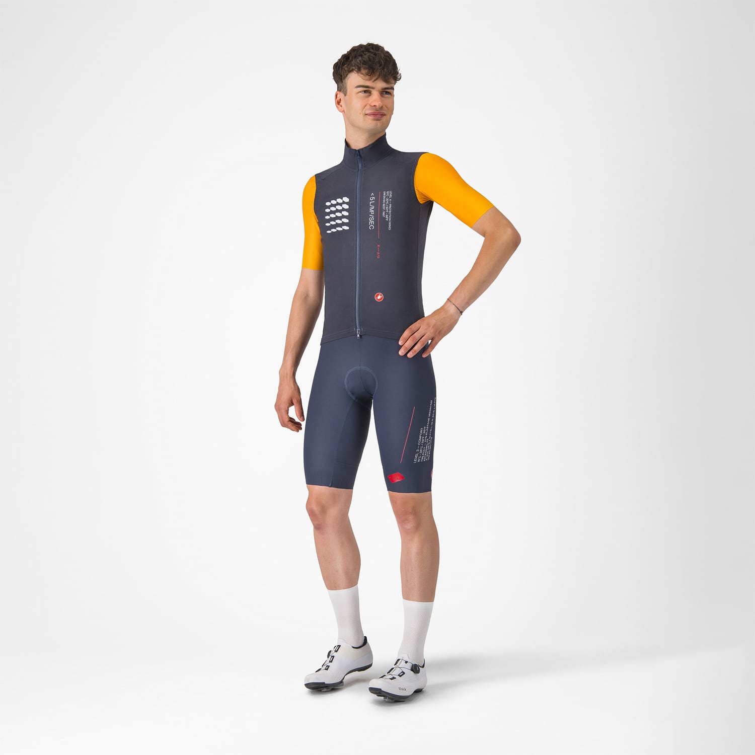Il gilet senza maniche ESPRESSO R--A/D combina eleganza e prestazioni per diventare un capo di abbigliamento da ciclismo irrinunciabile. Progettato per abbinarsi perfettamente al vostro abbigliamento Espresso, presenta la grafica firmata Richard Pearce e incorpora tecnologie avanzate per massimizzare il vostro comfort. Il tessuto elasticizzato nella parte anteriore blocca efficacemente il vento, consentendo al contempo una leggera circolazione dell'aria per mantenervi asciutti e comodi durante le vostre uscite.