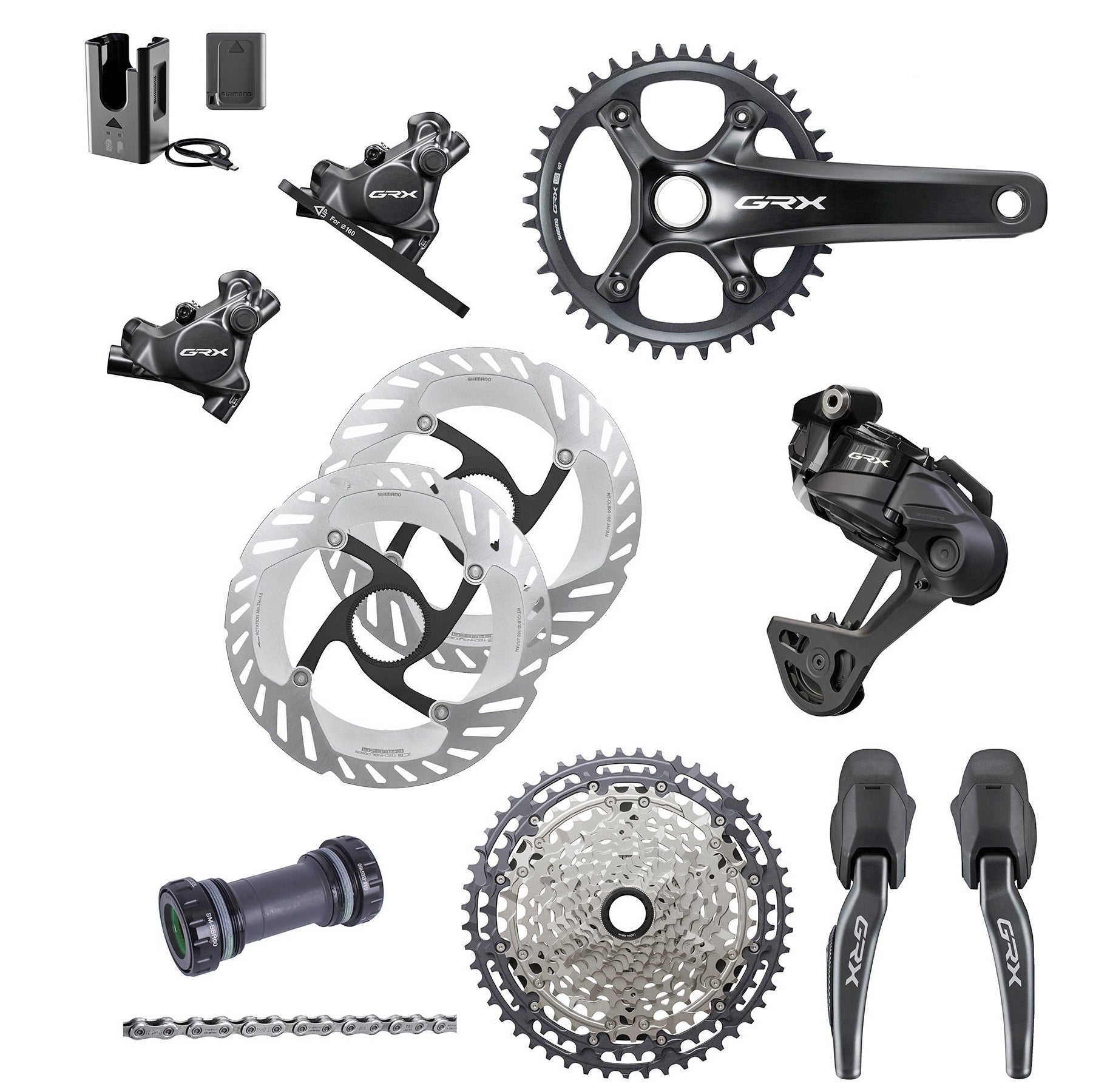 Progettato per i ciclisti gravel in cerca di avventura e divertimento, e anche per i concorrenti , il gruppo Shimano GRX Di2 a 12 velocità offre una trasmissione precisa, stabile e affidabile in tutte le condizioni.