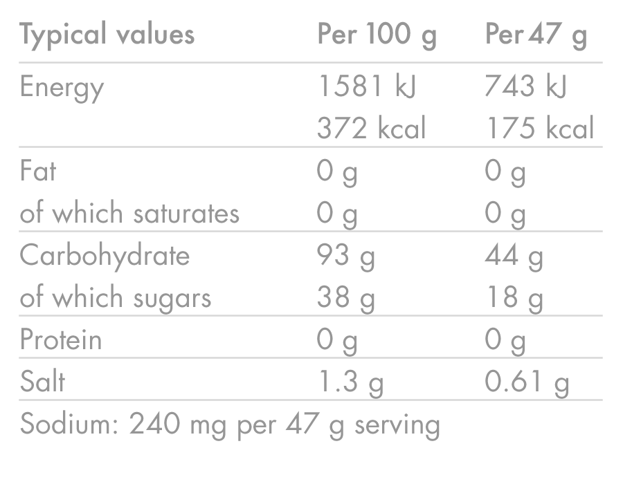Con un rapporto 2:1 tra maltodestrine e fruttosio, questa bevanda aiuta a ottenere il massimo dell'energia. assorbimento ottimale dei carboidratifino a 90 g/hgarantendo al contempo un'idratazione equilibrata.
