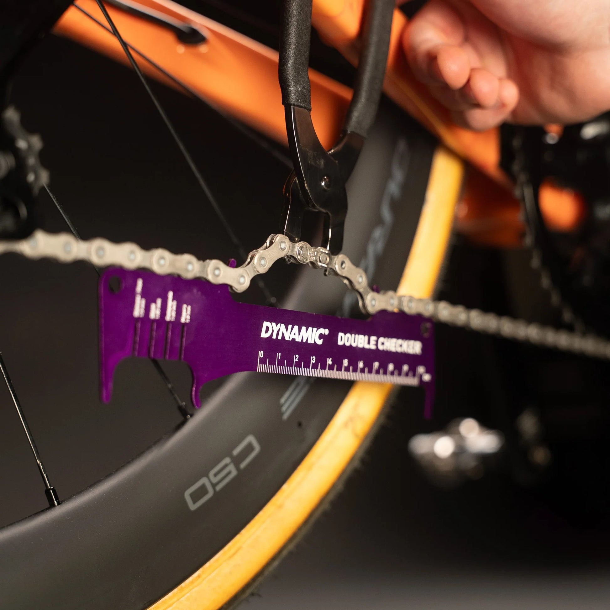 Il Double Checker DYNAMIC è uno strumento di misura di precisione progettato per semplificare la manutenzione della bicicletta. Svolge due funzioni fondamentali: misurare l'allungamento della catena e controllare lospessore dei dischi dei freni.