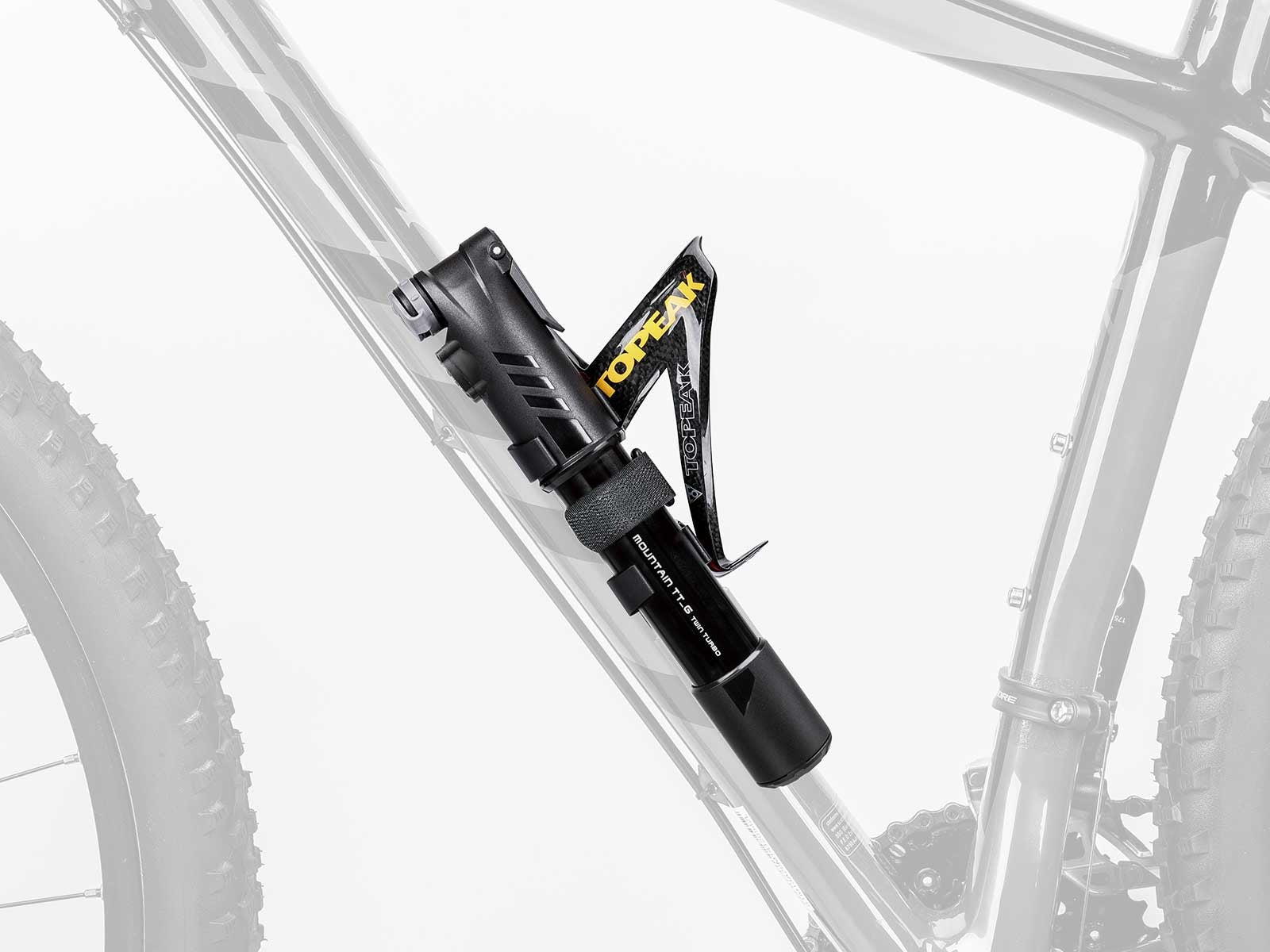 La pompe Mountain TT_G (G pour Gauge/Manomètre) intègre la technologie révolutionnaire Twin Turbo de Topeak. Contrairement à une pompe classique qui ne pousse l'air que lors de la phase de compression, la technologie TT capture l'air lors de l'extension et le comprime dans le cylindre pour le libérer lors de la poussée.